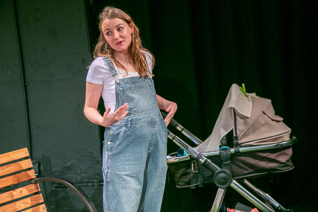 Working closely with Lucie Regan, Stage Manager, I assisted in making, sourcing and returning props. This also included a lot of problem-solving due to budget constraints. For example, we needed muslin baby cloths, but to purchase would be over budget. I found a haberdashery that sold muslin by the meter for £5, hemming it myself we kept costs down. I also assisted Alex Marker in building aspects of the set and scenic painting the floor work. This included carpentry as well as texture painting concrete.